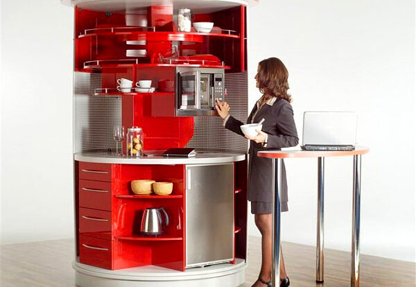 mini kitchens that integrate appliances, storage, and prep areas all in one sleek unit. Such solutions keep essentials within reach while maintaining a clutter-free counter.