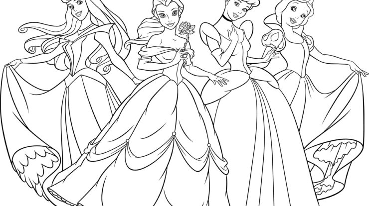 Four Disney Princess Coloring Page – Wecoloringpage.com